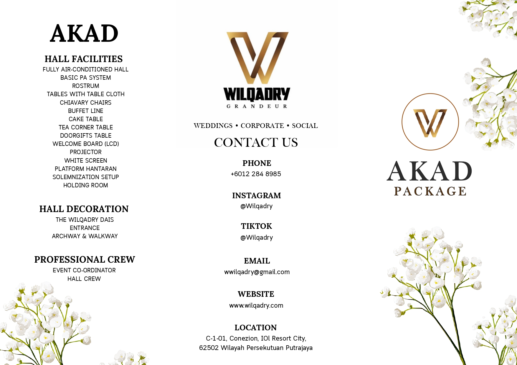 Hall Wilqadry offers an elegant and exclusive space, where modern design meets subtle luxury—an ideal setting for a sacred akad nikah and moments that will be remembered forever.